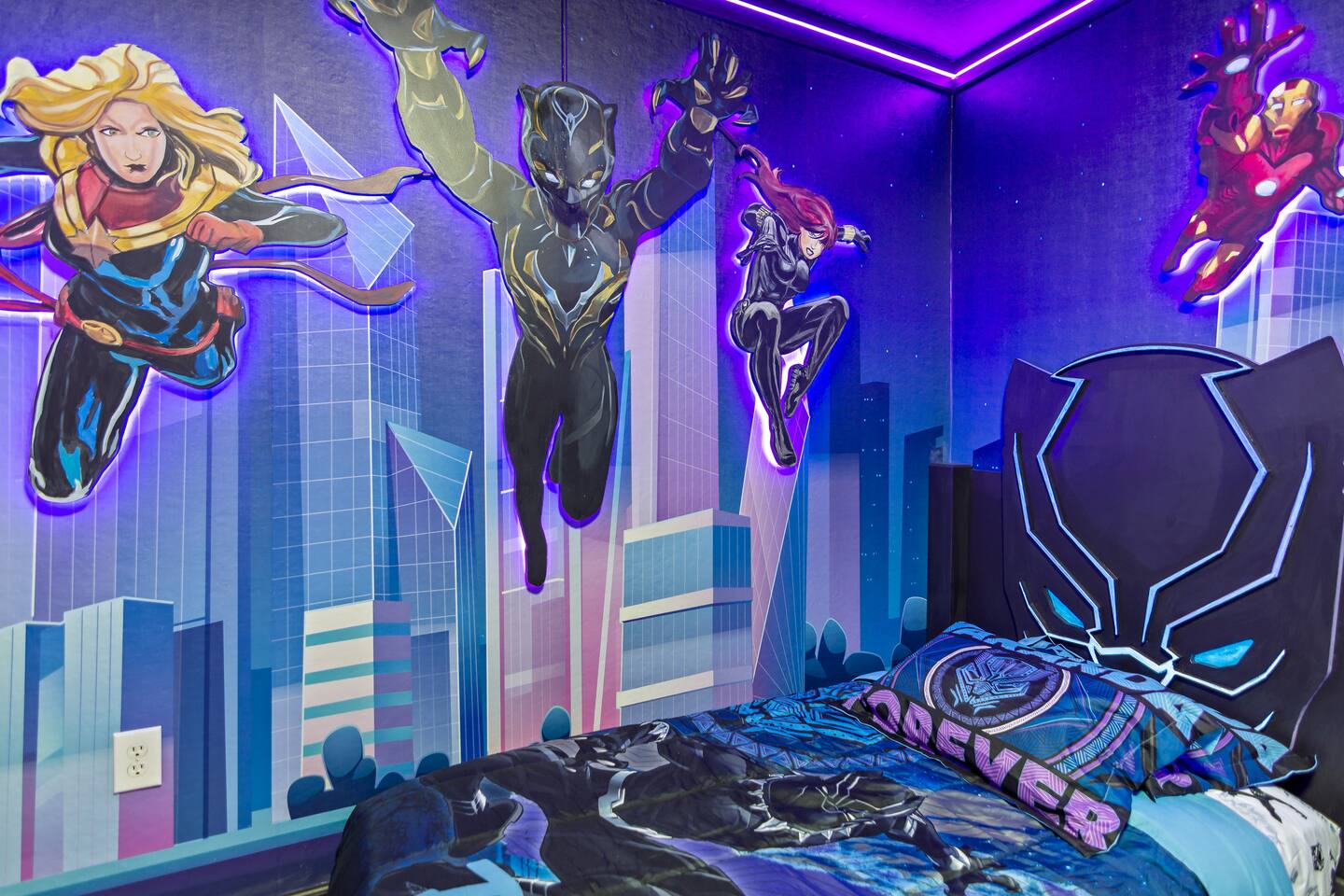 We invite you to transport yourselves to a “whole new world” of adventure and relaxation. As your hosts, we are here to make your stay unforgettable, so “be our guest and put our service to the test”. "Everything is by design" at our home which is located in a gated resort community. The villa features 6 bedrooms and 4 bathrooms, including a Black Panther-themed room and a Finding Nemo-themed room that will make you feel like you are part of the movies. Plus, the Star Wars-themed game room in the converted garage will have you feeling like you are part of the Rebel Alliance. We know that when you're on vacation, you deserve more than just the "bare necessities!" That's why we try to include all the amenities you could need, from comfortable beds and fluffy towels to a fully equipped kitchen and high-speed Wi-Fi. The resort community clubhouse also has endless amenities. If you're looking to stay active during your vacation, the community fitness center is the perfect place to work up a sweat. And when it's time to unwind, head to the movie theatre for a private screening. “Do you want to be where the people are? Up where they play all day in the sun?" Then head to the community water park and have a blast. After a day of adventure, relax in our heated pool and hot tub with views of Lake Reedy. "Hakuna Matata! - we have a problem-free philosophy", and we're always here to help make your vacation as stress-free and enjoyable as possible. "You got a host in me," so if you need anything during your stay, just let us know! So, what are you waiting for? Book your stay with us and let the magic begin!