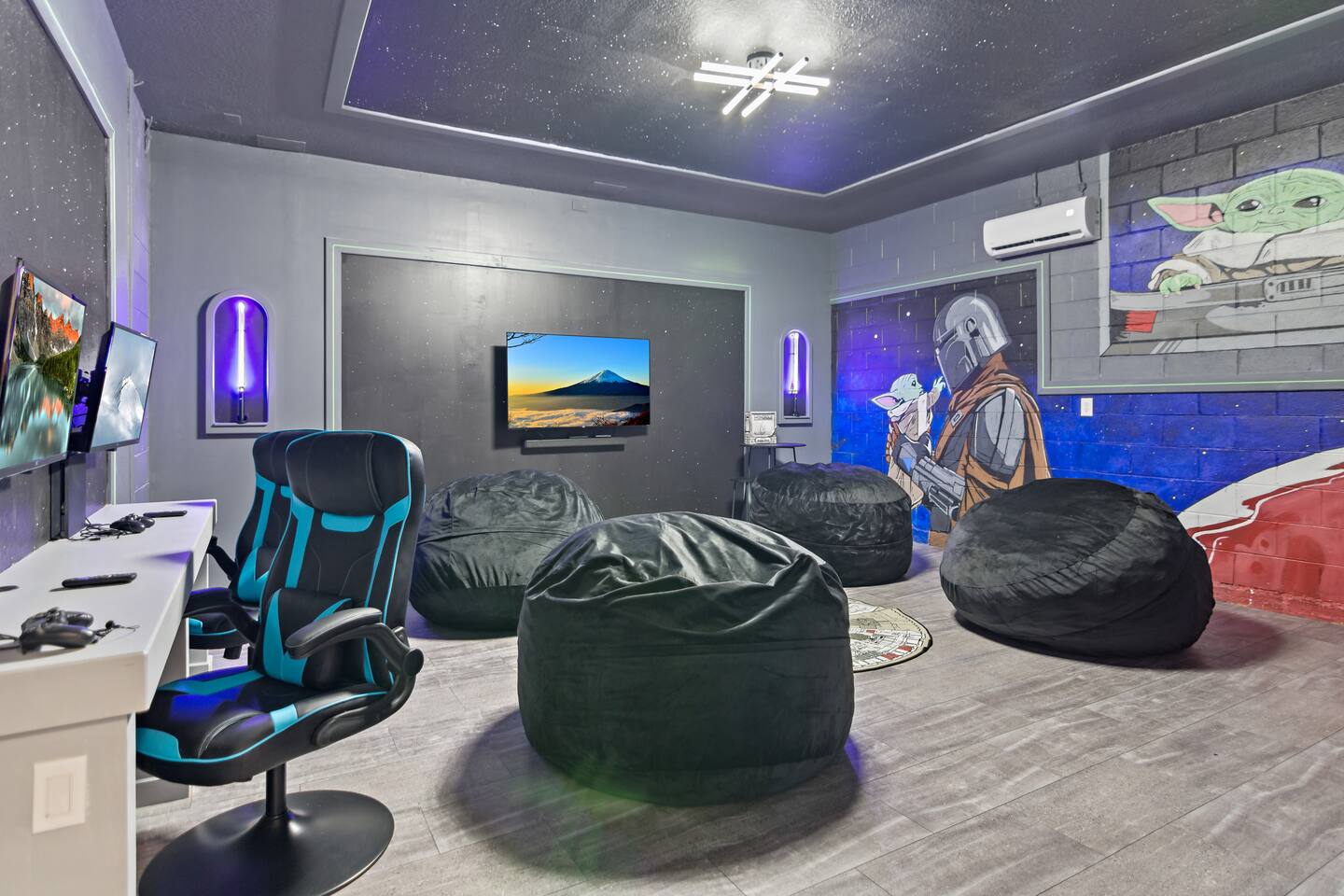 ★ Baby Friendly ★ 2 Master Suites with king beds and en suite baths ★ FREE High-Speed Wifi at 500mbps ★ FREE onsite parking ★ FREE Washer/Dryer included in home ★ FREE Cable TV Keyless Home Entry Air Conditioned Game Game room/Kids' Lounge 2 Playstation4 gaming stations Fully Equipped Kitchen Daily Trash Pickup Welcome to our magical home, where dreams can come true! Too cliché?! Well, that's what happens when Disney is your neighbor :)